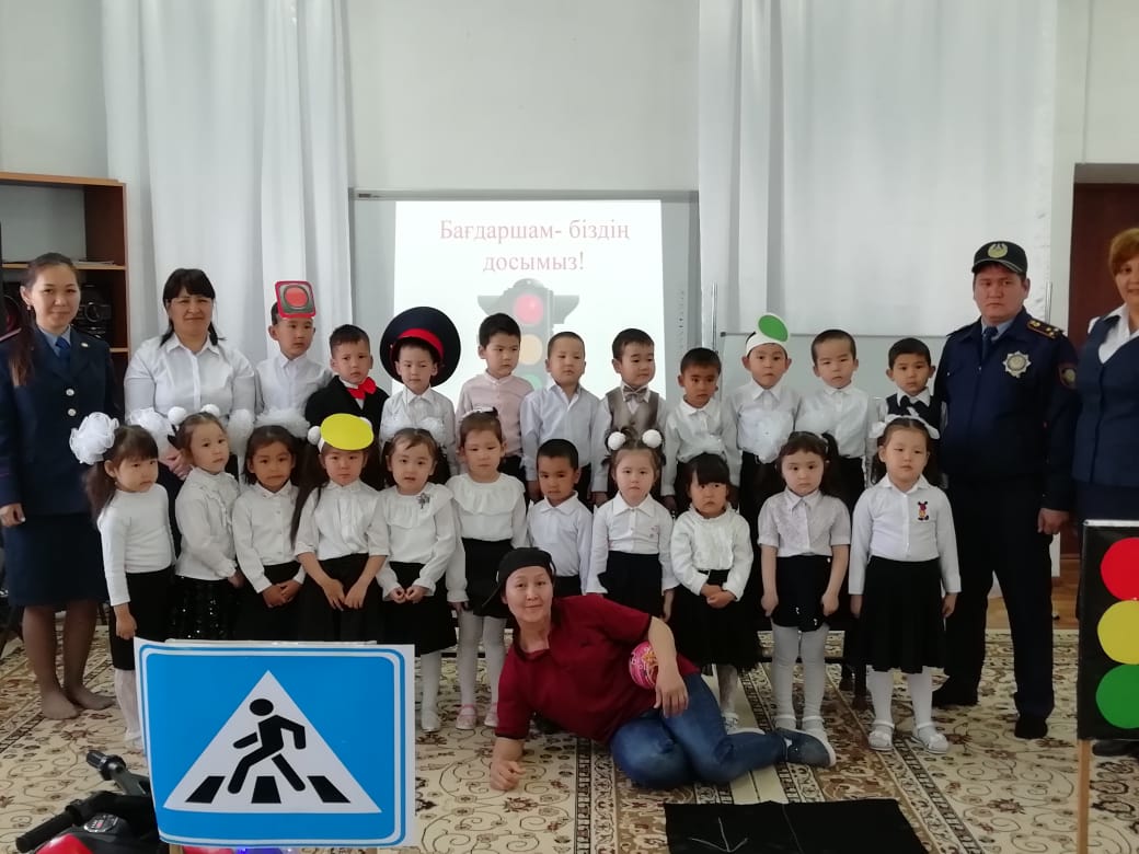 "Балапан" ІІ кіші тобында тәрбиеші Ғ.Бубитаеваның ұйымдастыруымен "Бағдаршам -біздің досымыз!" тақырыбында ойын-сауық өтті. Мақсаты: жолда жүру ережелерін есте сақтау, бағдаршам белгілерінің айырмашылығын жолда және көшедегі қауіпсіздік ережелері, жол белгілері туралы түсініктерін кеңейту.Балаларды жол жүру ережелерін сақтауға тәрбиелеу.