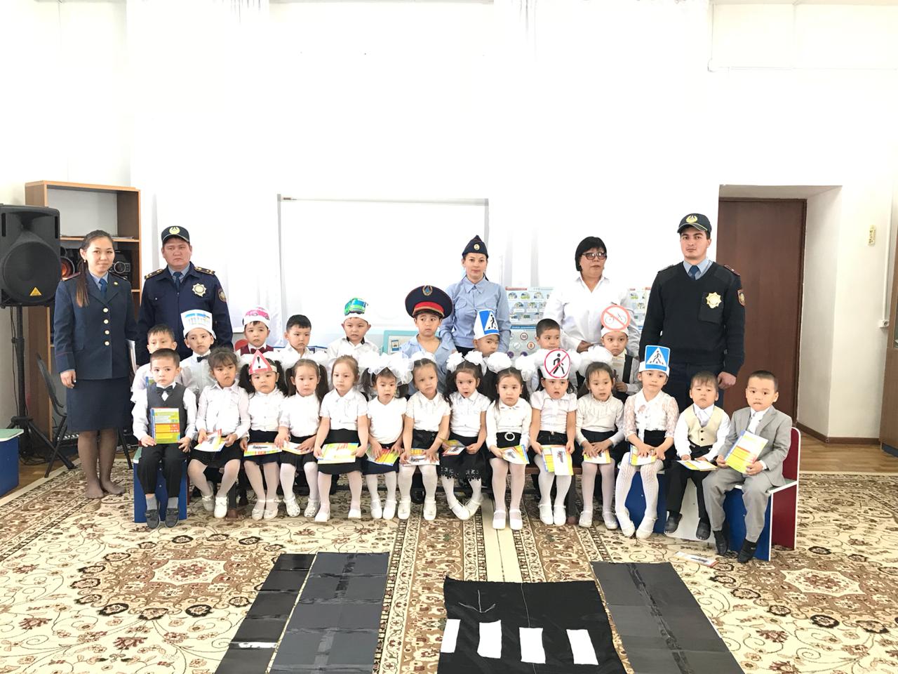 Ойын-сауықта балаларға жол ережелері, жол белгілері туралы слайдтар көрсетіліп түсіндірілді. МАЙ қызметкерлері балаларға жолда, көшеде жүрген кезде абай болып жүру туралы түсініктер берді. Балалар тақпақтар, әндер айтып, ойын ойнап кешті көңілді өткізді.Соңында тәрбиешісі балаларға ата-аналарымен бірге танысуға "Қауіпсіздік ережелерін білу, жарақаттанудан сақтайды!" делінген парақша таратты.