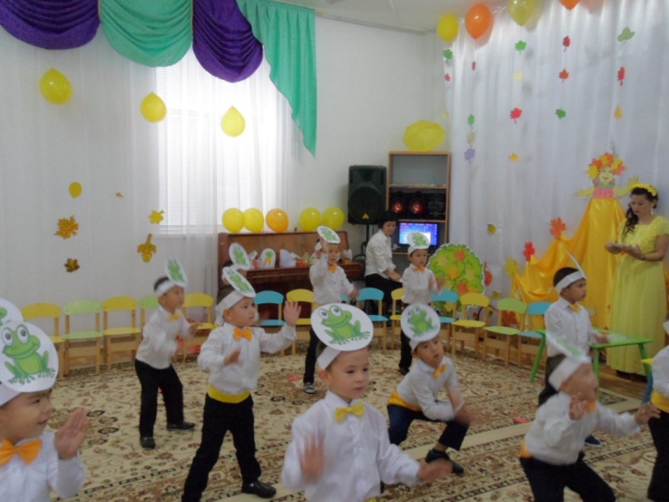"Таңшолпан" ортаңғы тобында "Берекелі, Алтын күз!" ойын-сауығынан "Бақалар" биі Тәрбиешілері Қ.Даришева, А.Бикешова