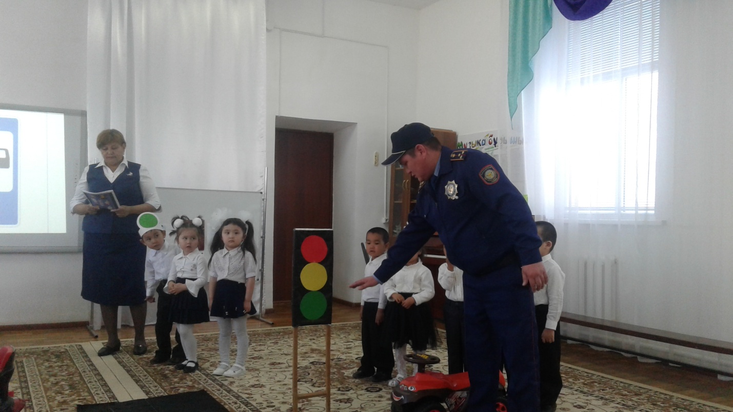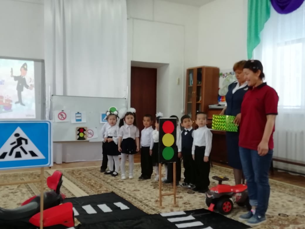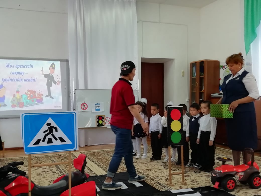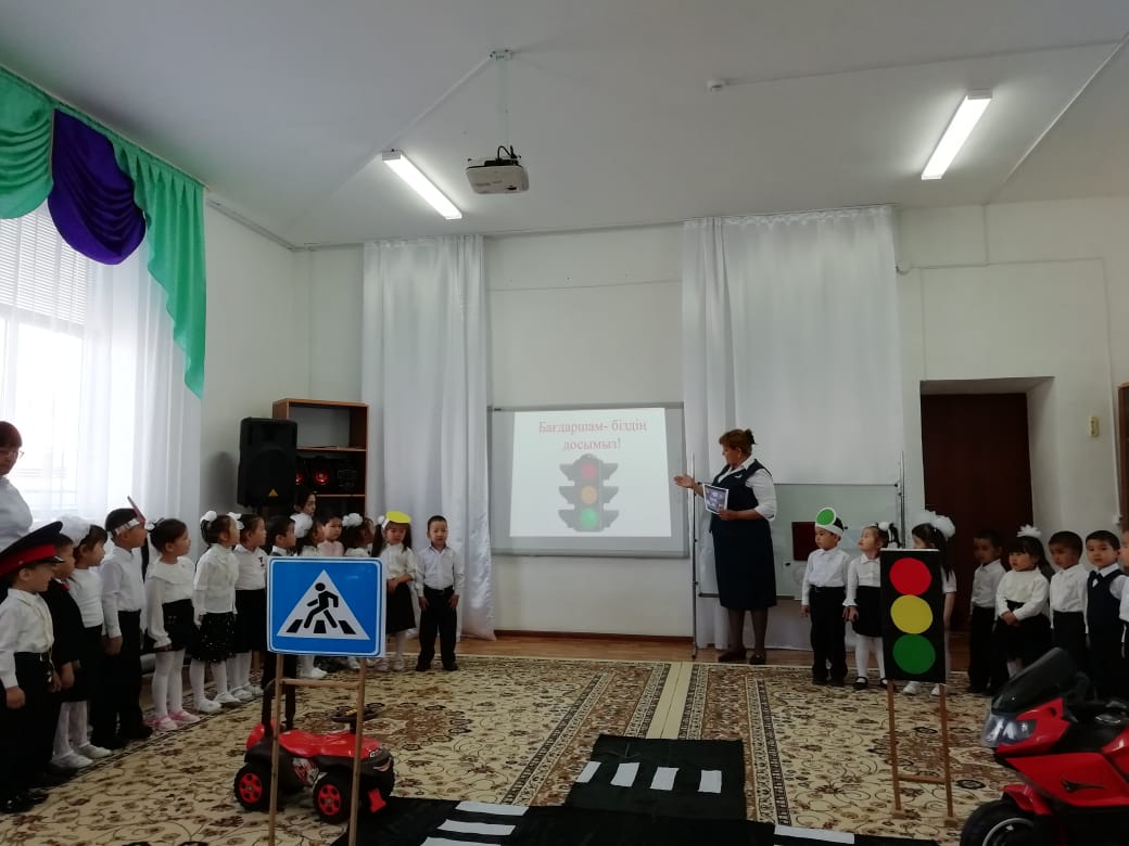 Ойын-сауықта балалар жол ережелері туралы көрініс тамашалап, өз ойларын ортаға салды. Жол белгілерін ажырата білді. Дымбілмеске жолда доп ойнамау керектігін түсіндіріп, жол ережесі туралы түсінік берді. Балалар тақпақтар, әндер айтты, "Бағдаршам" ойынын ойнады. Ойын-сауыққа арнайы қонаққа келген МАЙ қызметкерлері бүлдіршіндерге жолда жүру ережелерінің қыр-сырларын үйретті.