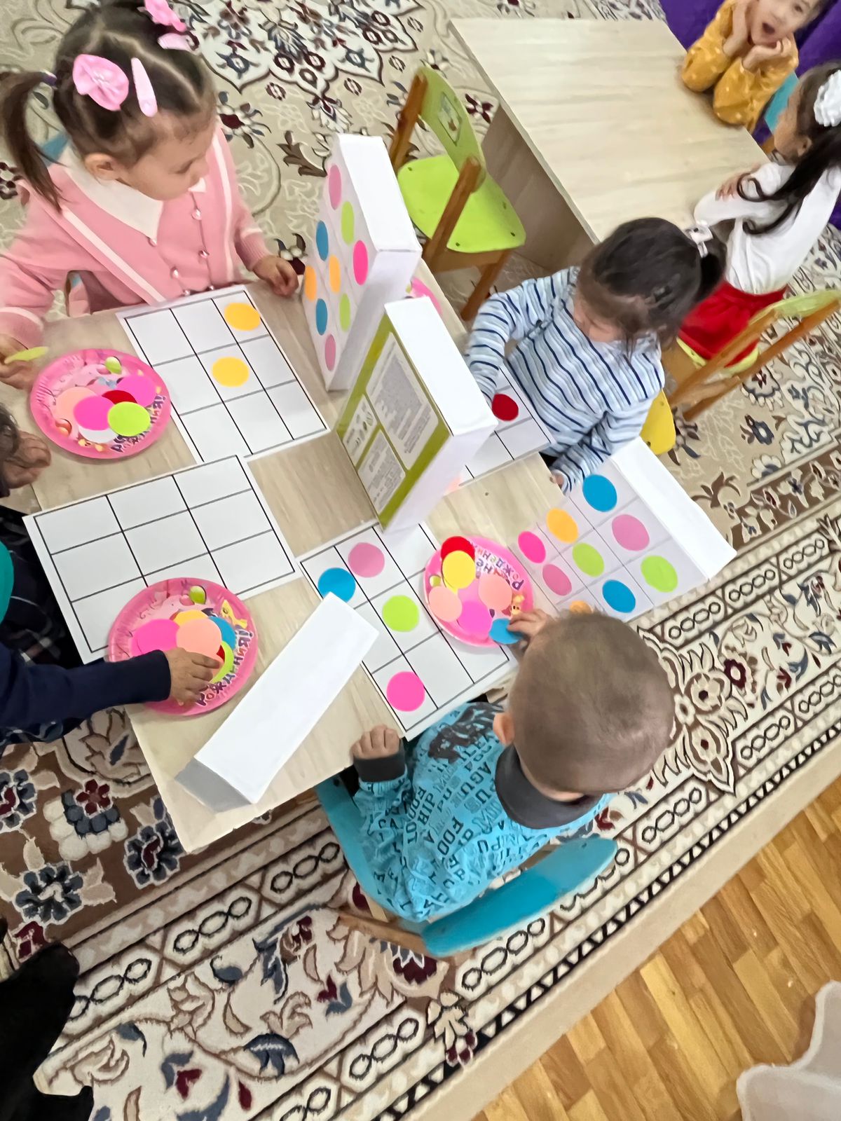 «Ойнайық та, ойлайық» тақырыбы бойынша «Көңілді шеңбер», «Кім жоғын тауып ал», «Қандай зат жоқ?, не өзгерді?», «Сиқырлы қоржын» ойындарын балалар қызыға ойнады. Ойынға деген құштарлықтары артып, көңілді жақсы әсер қалдырды.