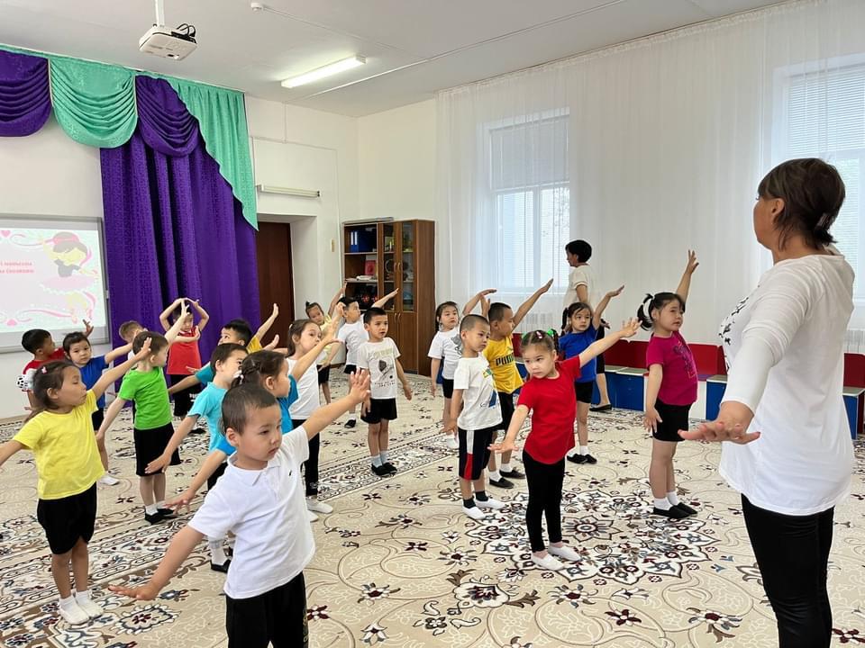 «Кел, билейік!» ұйымдастыруымен ашық іс-әрекетін өткізді. Мақсаты: Балалардың бойында өнерге, биге деген қызығушылықтарын арттыру, үлкендердің көмегімен би - қимыл қозғалыстарын дамыту. Әртүрлі биде кездесетін қимылдарды нақты, дұрыс көрсете білуге үйрету. Жыл бойы үйренген би-қимыл қозғалыстарын биде көрсету, әрі қарай жетiлдiру. Ұйымдастырылған іс-әрекетін балалар залға әуенмен шеңбер бойымен жүре қимылдар жасап, айнаға шахмат түрде тұрып ,,тәжiм" жасады. Алдымен шеңбер бойымен жүрiп сергiту жаттығулар жасап, одан кейін ортада тұрып дене қыздыру жаттығулар жасады. Балалар жыл бойы үйренген би қимылдарды еске түсірiп, қимылдың атауларын атады (,, тәжiм", ,, құс қанаты ", ,, қос өркеш", ,, айналмақ", ,, қос айналмақ ", ,, ұялу", ,, қызғалдақ ", ,, бiлезiк", ,, сәндену"). Балалар осы аталған қимылдары әуенге қосып би ретінде орындады. Балалар музыканың ырғағымен жүрудi; қимылдарды музыкамен сәйкестендірудi; музыканың екінші бөлігінде қимылдарды өзгертуді бiледi. Балалар жақсы көңіл күймен орындады.
