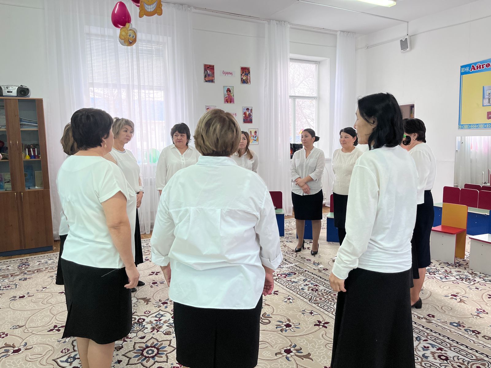 Тулегенова Болған Саменқызының ұйымдастыруымен "Мейірімділік- жылулық шуағы" атты қызметкерлер арасында тренинг ойын, жаттығуларын өткізілді