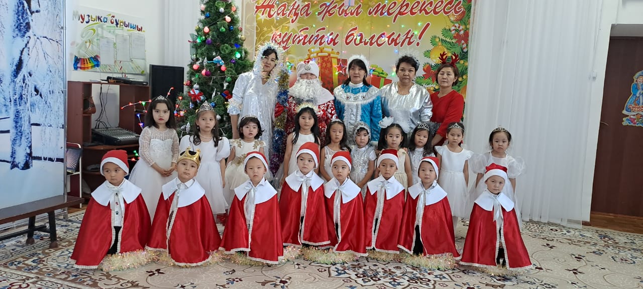 Мақсаты: Балаларға мерекелік көңіл- күй сыйлау. "Хрустальді кебіс " ертегісімен басталып, балалар би билеп, ән айтылып. Ойындар ойнатылып . Ескі жылмен қоштасып, жаңа ұлу жылын қарсы алып. Аяз ата мен Ақшақар балалар өнерін тамашалап сыйлықтарын таратты.